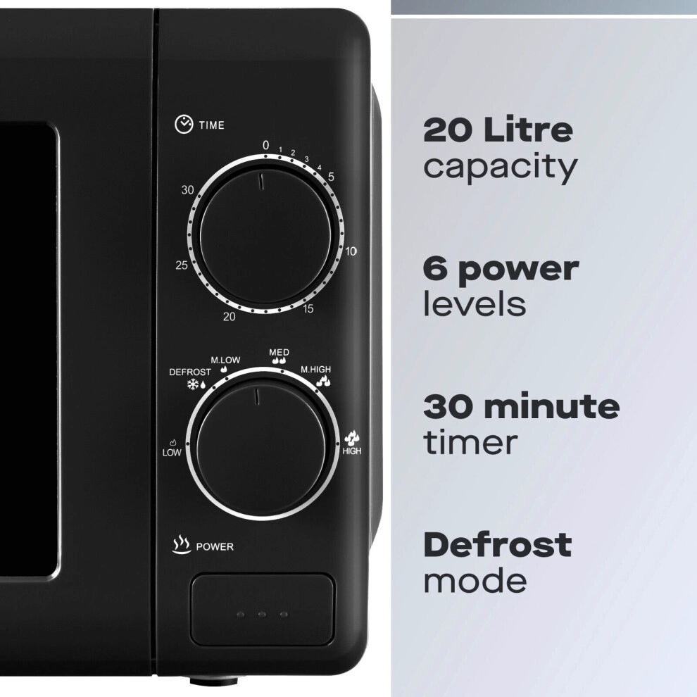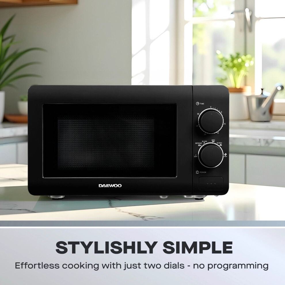 Daewoo 20L 800W Manual Microwave 5 Power Setting 30Min Timer Defrost Black