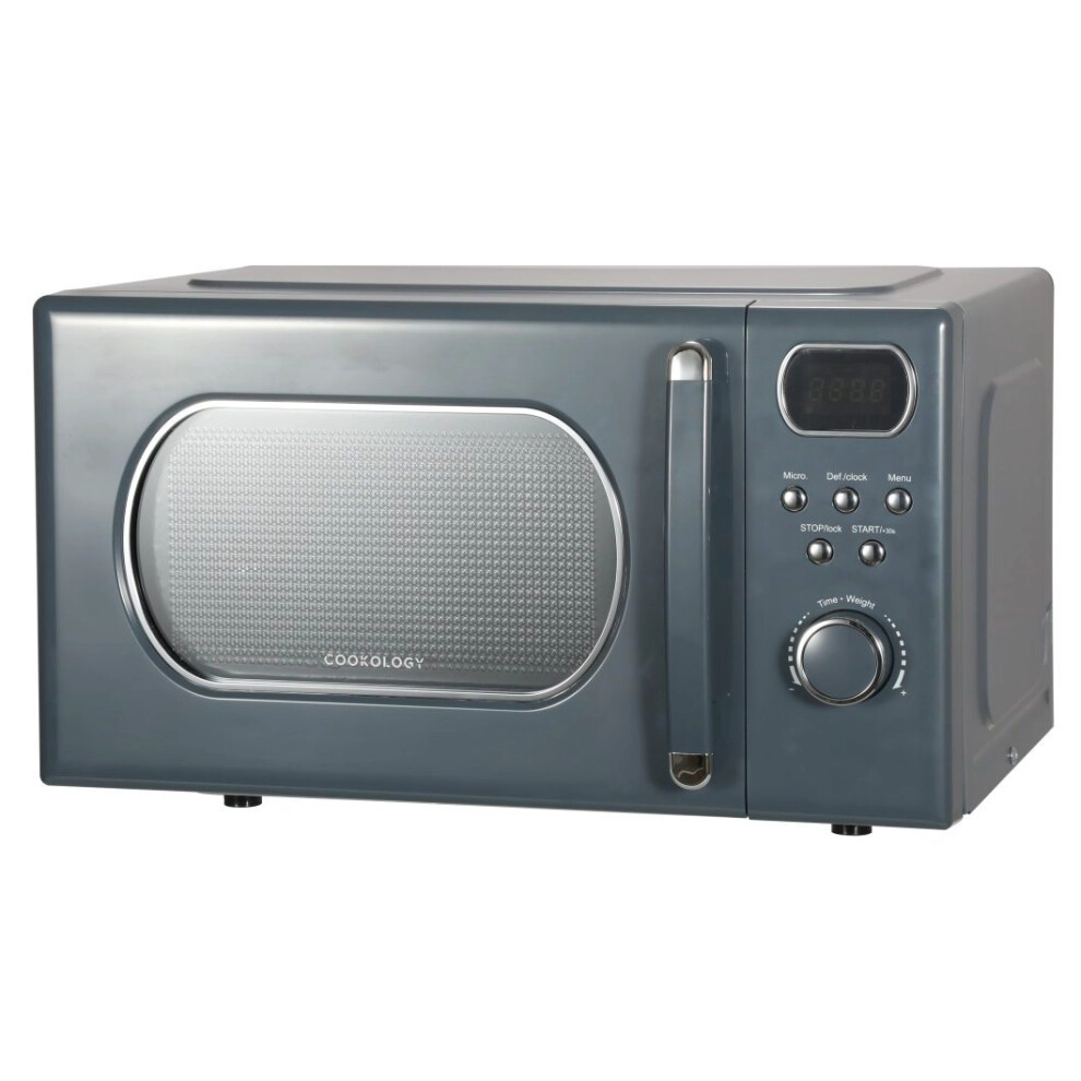 Cookology RETDD20GR 20L Retro Microwave, 800W, 25.5cm Turntable, 8 Auto Programmes, 5 Power Levels, Defrost - Grey