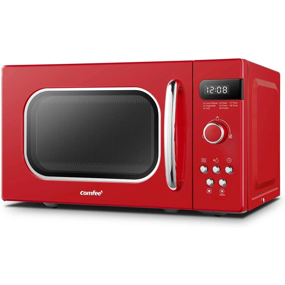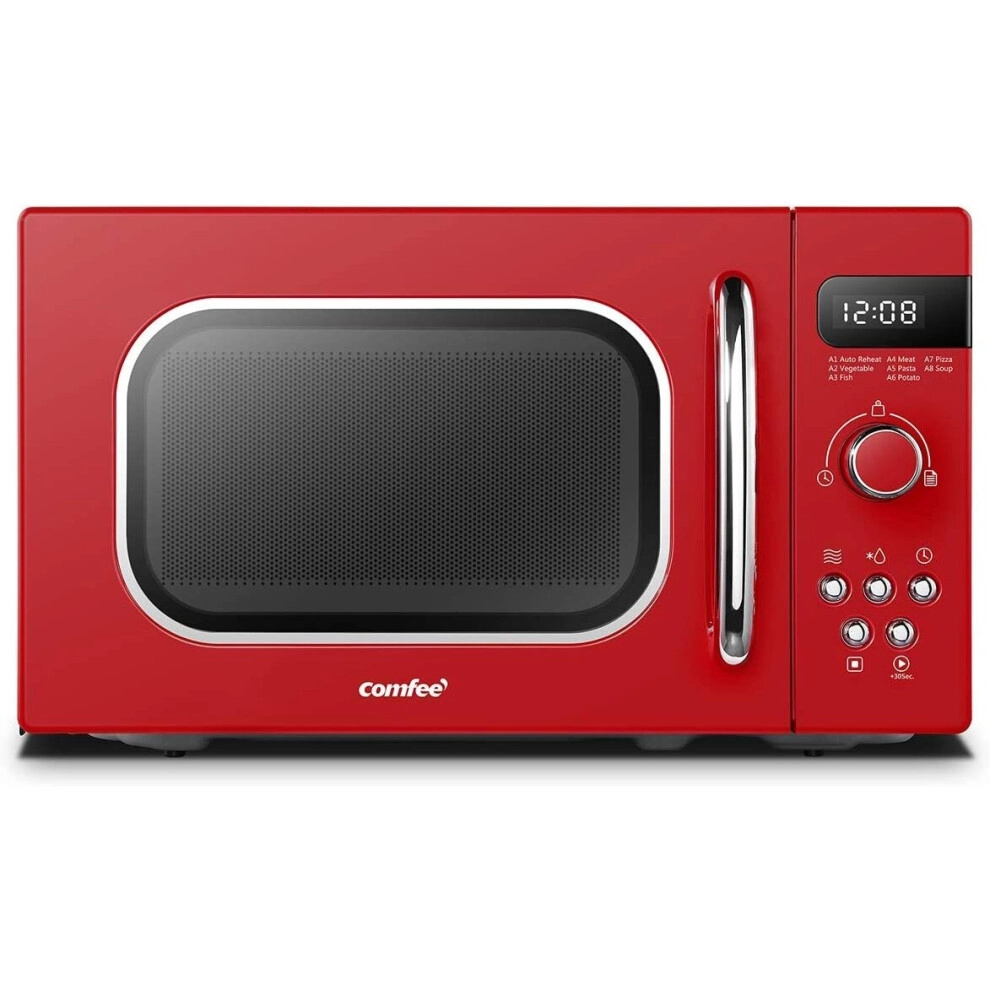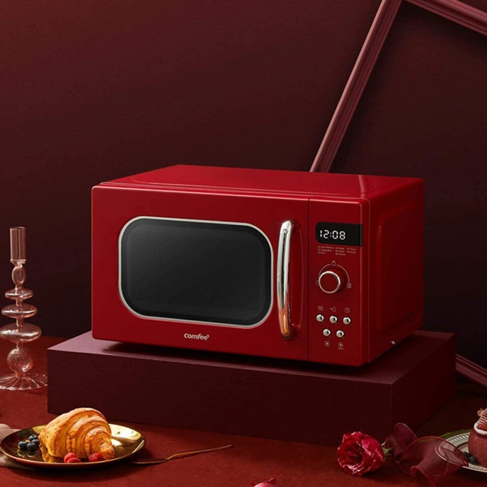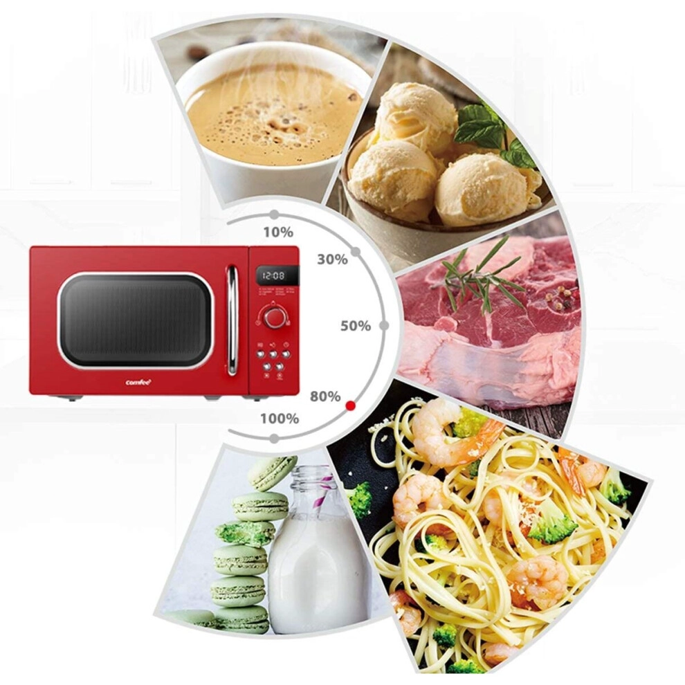 COMFEE' Retro Style 800w 20 Litre Microwave Oven with 8 Auto Menus, 5 Cooking Power Levels and Express Cook Button - Passionate Red - CM-M202RAF(RD)
